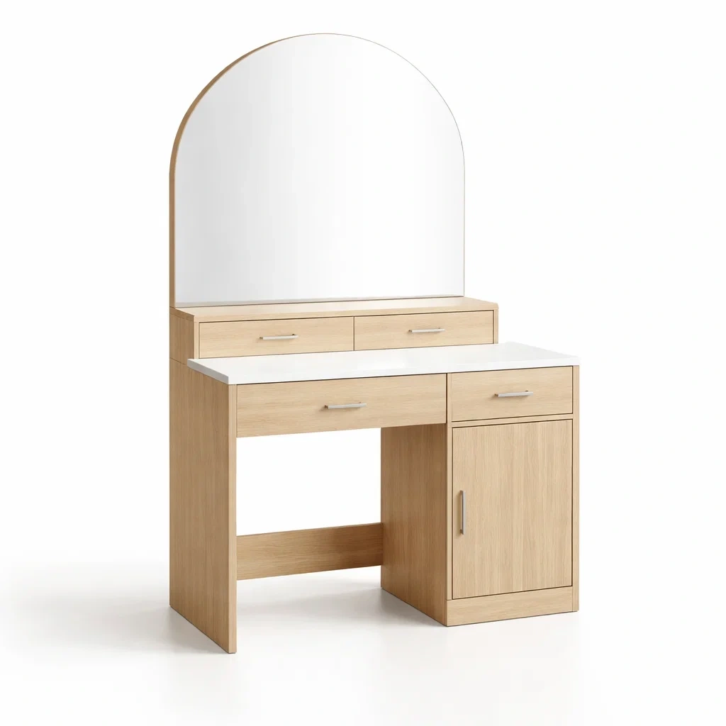 Coiffeuse en mdf avec miroir arqué et tiroirs