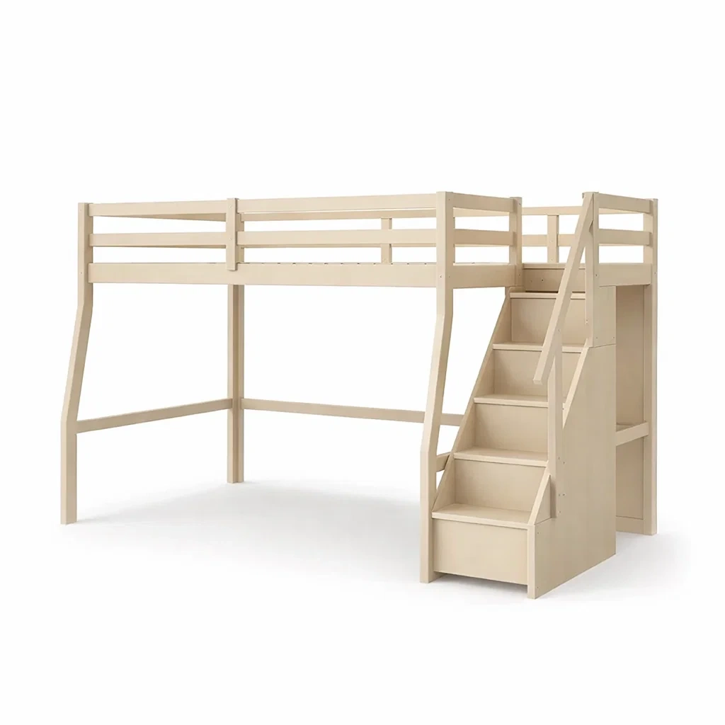 Composants inclus : Lit mezzanine, échelle, étagères de rangement